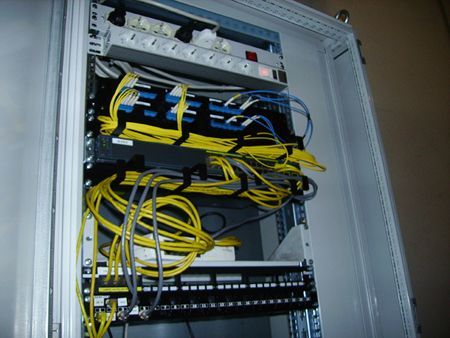 Realizzazione di impianti a cablaggio strutturato (reti Ethernet) con supporti sia a livello di classico cavo UTP sia in Fibra ottica per la trasmissione di fonia, dati, segnali video, ed altri tipi di segnali.